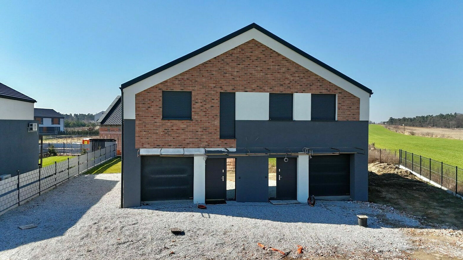 To ostatni dostępny lokal w nowoczesnym budynku jednorodzinnym dwulokalowym, usytuowanym na skraju kameralnej inwestycji obejmującej dwa budynki bliźniacze. Dom położony jest w wyjątkowym miejscu - z widokiem na malownicze pola i las.